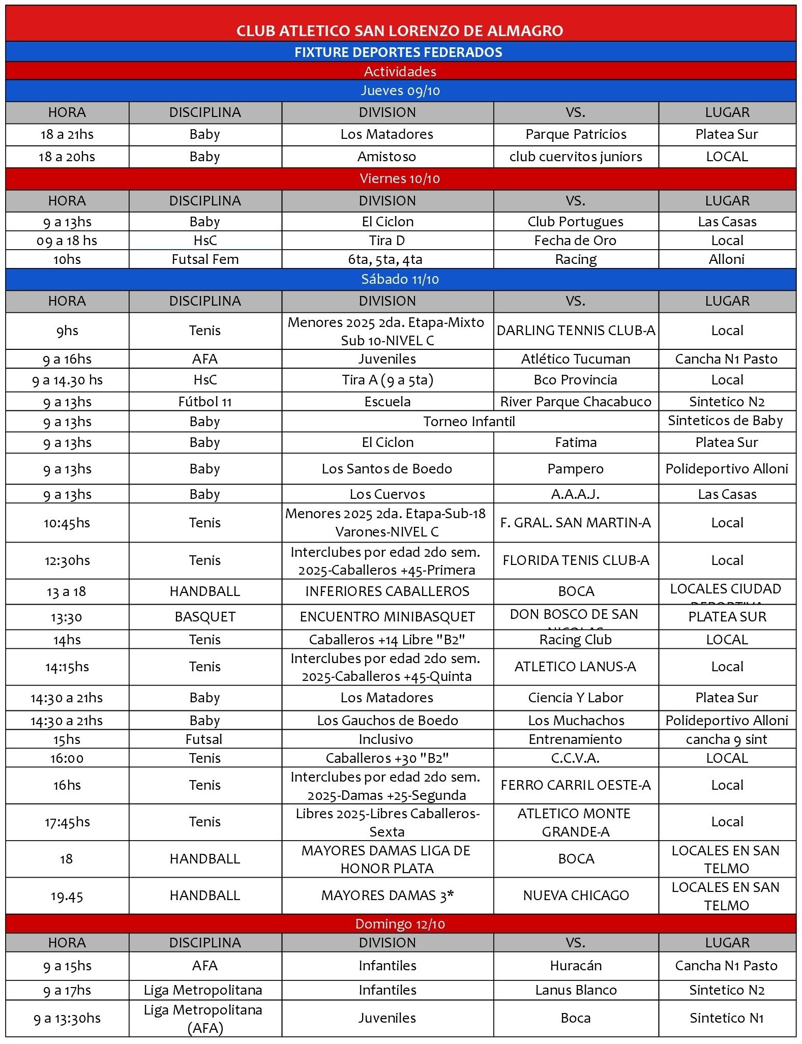 Hay mucha actividad este fin de semana para las múltiples disciplinas de San Lorenzo. ¡Toda la info acá!